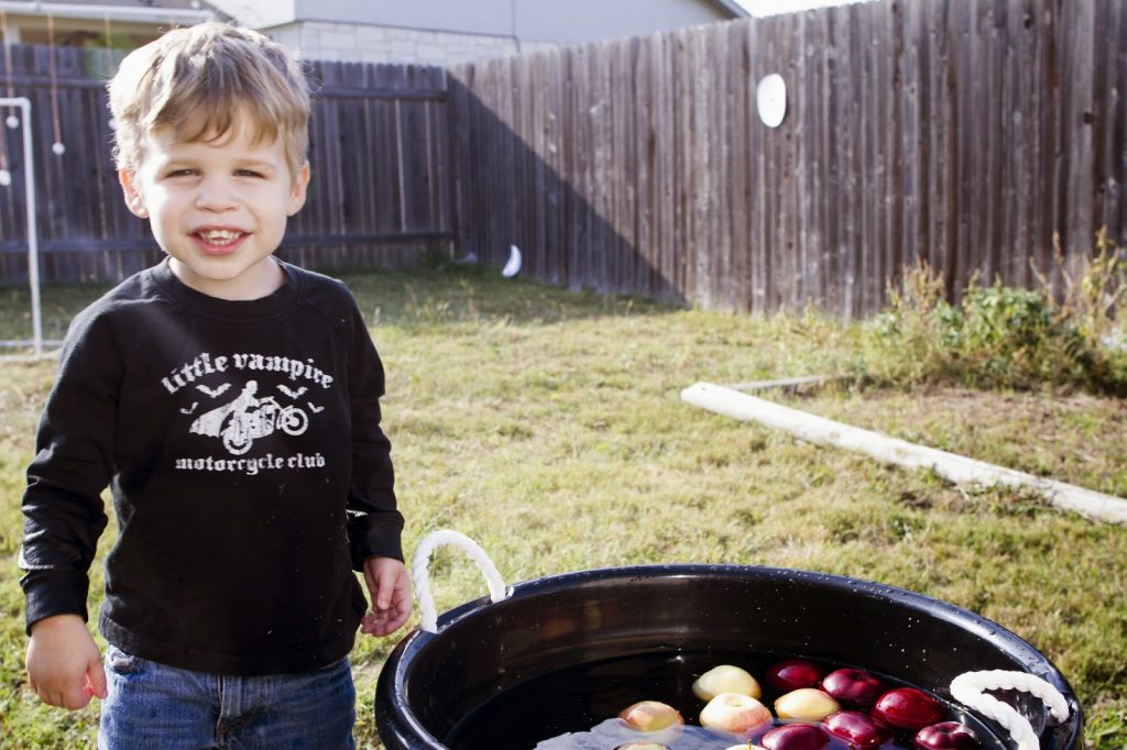 I couldn’t keep Slone away from the bobbing for apples bucket. He was drenched halfway through the party so I was happy with my decision not to put him in his costume!