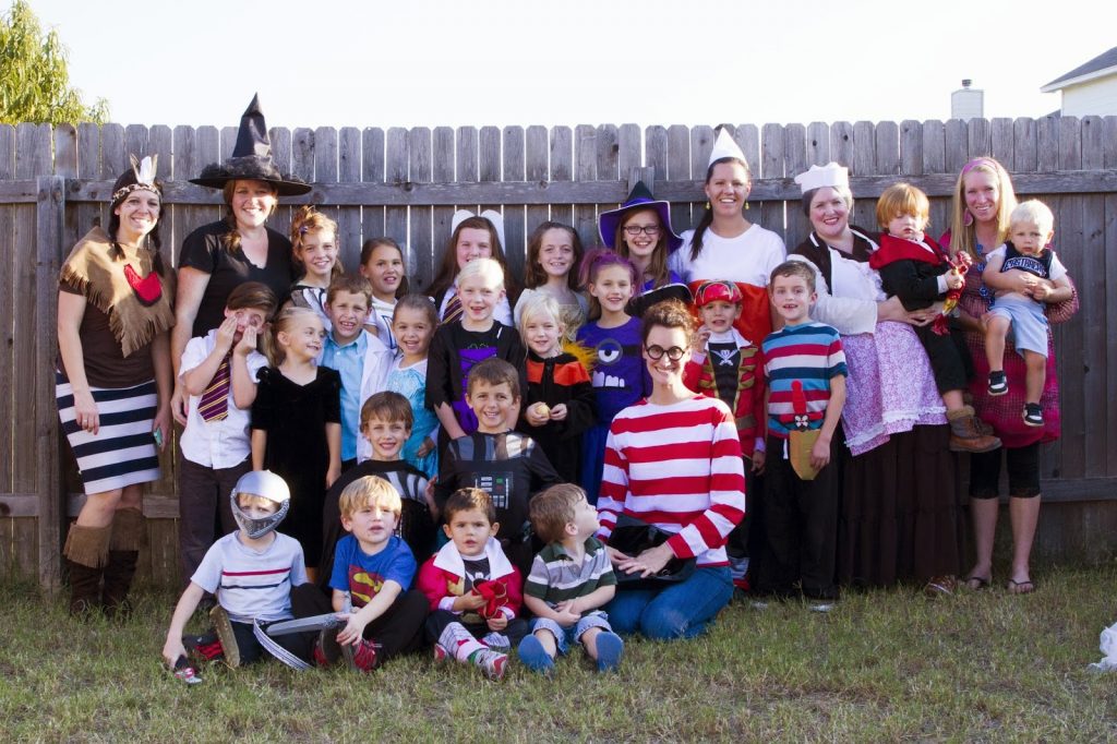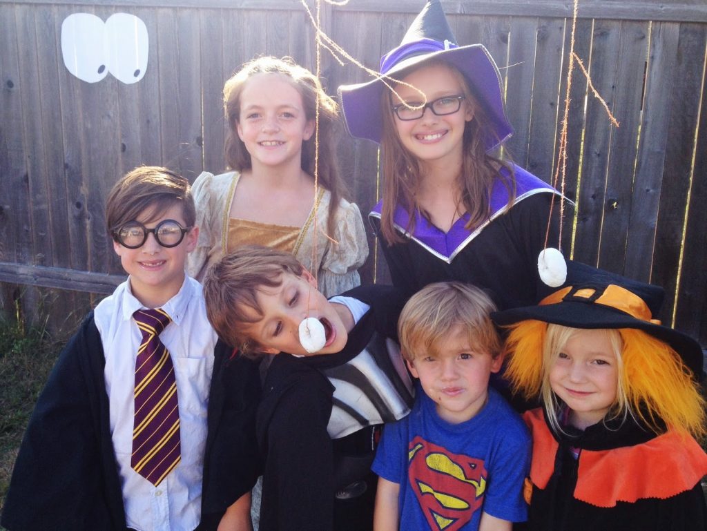 We had knights, a mad scientist, a owl, a cheerleader, a vampire, ninjas, purple minion, witches, Harry Potter, Hermoine Granger, Ron Weasley, a fortune teller, 2 darth vaders, queen Elsa, Wilma, candy corn, Honeydukes candy lady, hippie and an Indian. Phew!