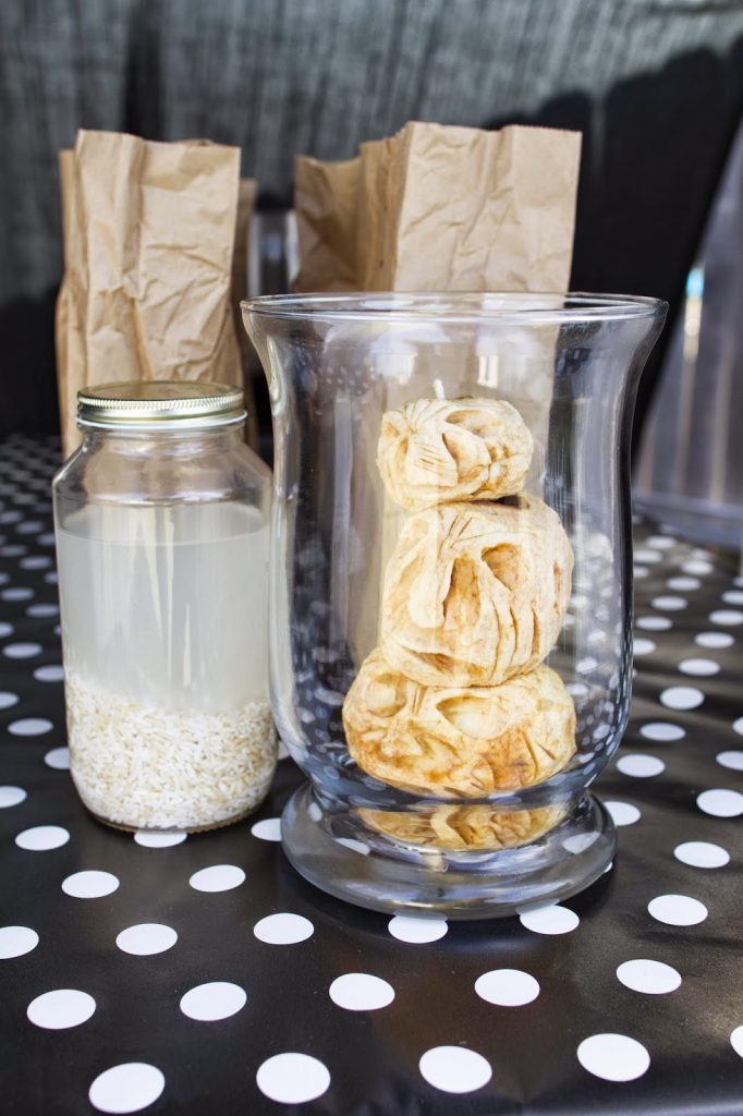I also had fun making a cauliflower floating brain, putting “maggots” in a jar and making shrinking apple heads!