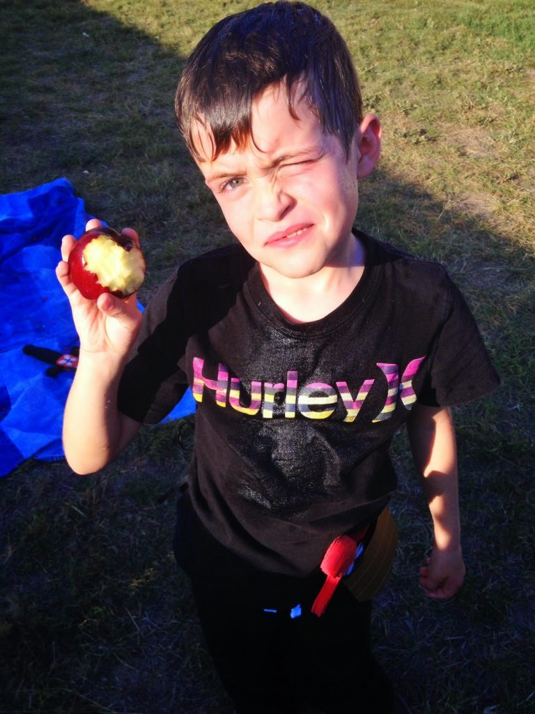 Obviously playing in water runs in the family because Liam got into bobbing for apples!