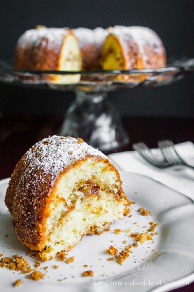 I laughed to myself because I had a little secret. I had altered her recipe a bit to make it a little more moist and practically doubled the cinnamon/brown sugar ratio from the original. It’s become one of my all time favorite bunt cakes.