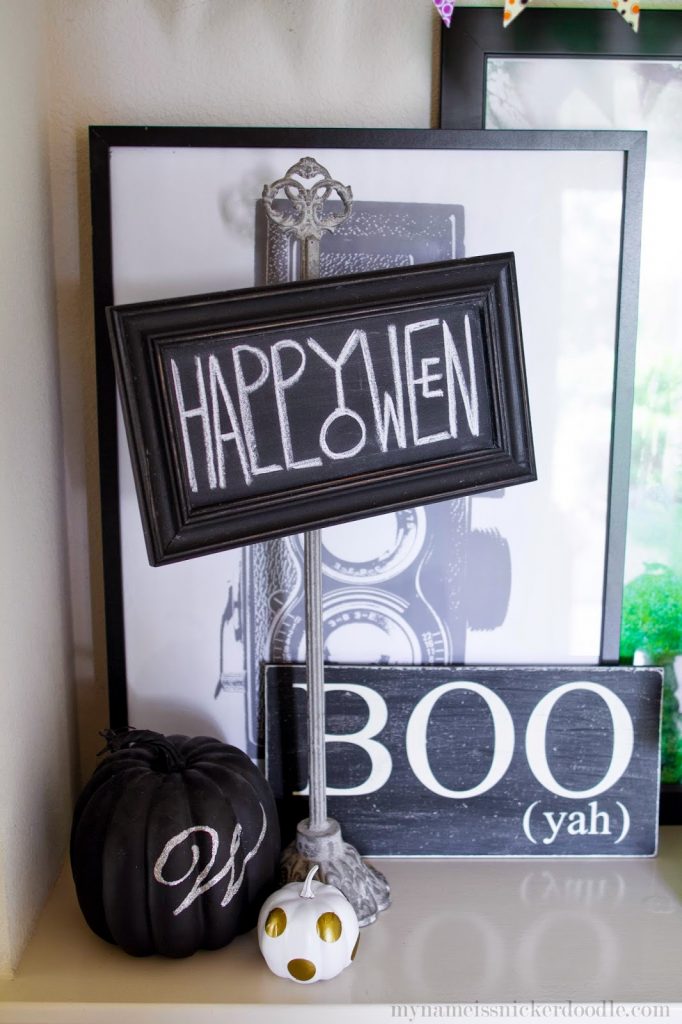 I found this genius Happy Halloween graphic on Pinterest and used it for my little black chalkboard.