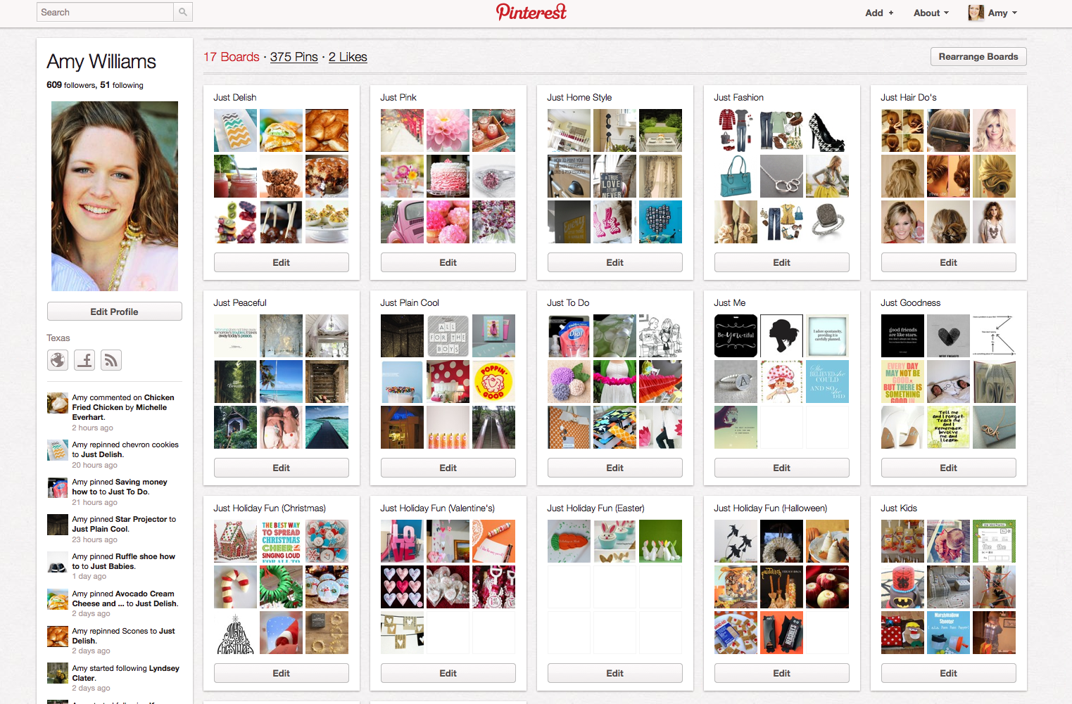 Lately, I have been amazed by how many people have been following me on Pinterest. I was so confused of how they even found me there. I mean, Amy Williams is a pretty common name. I just chalked it up to some quirk with Pinterest, like someone just liked a pin of mine then it automatically had them follow me.
