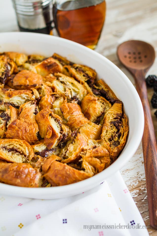 That’s how this recipe came about because I wanted to use them up in something. Every single person in my family loves Nutella so we usually have some on hand at all times. I have a friend who makes Chocolate French Toast where she stuffs each croissant with chocolate chips, dips it in eggs and milk then fries them individually.